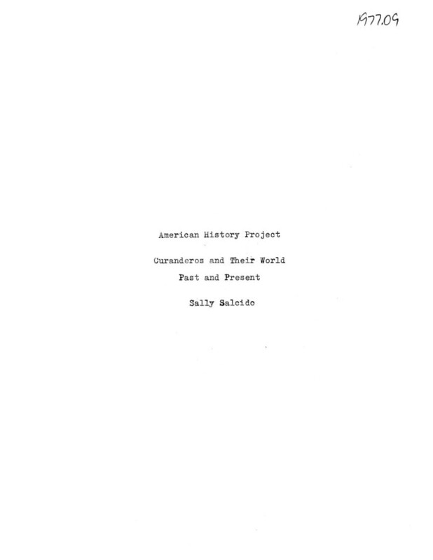 Research paper written by Sally Salcido for an American History Class at Marfa High School. It describes the cuanderos - or quack-healers in Hispanic culture. The paper lists several diseases and remedies used by cuanderos.